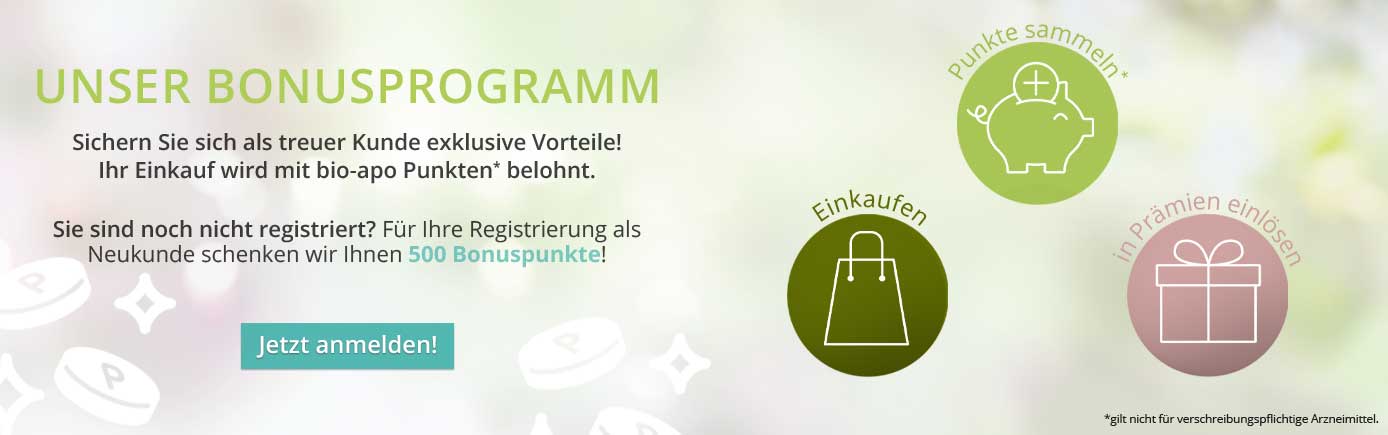 6 Den Gutschein erhalten Sie zusammen mit der Bestätigung Ihrer Anmeldung. Das Angebot gilt ausschließlich für Neukunden, die sich erstmalig zum Newsletter anmelden, und kann pro Kunde sowie E-Mail-Adresse nur einmal genutzt werden. Eine Kombination mit anderen Aktionen ist ausgeschlossen. Der Gutschein ist ab einem Mindestbestellwert von 45,- € einlösbar und nach Erhalt dieser E-Mail 30 Tage gültig. Gesetzlich preisgebundene und verschreibungspflichtige Produkte, Bücher sowie Säuglingsanfangsnahrung sind von der Einlösung ausgeschlossen.