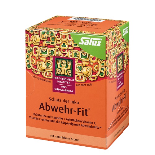Kombiniert die etwas herbe Lapacho-Rinde mit weiteren wertvollen Früchten und Kräutern. Durch den honen Vitamin C gehalt unterstützt der Kräutertee insbesondere in der kalten Jahreszeit die Abwehrkräfte. 2 Tassen des wohlschmeckenden Salus® Abwehr-Fit Tees decken 50 % der empfohlenen Tagesdosis an Vitamin C.