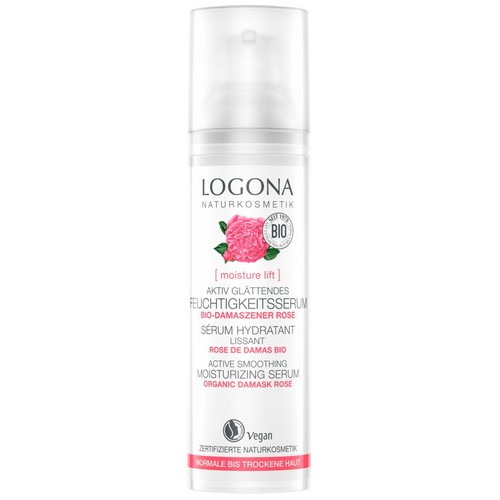Das LOGONA AKTIV GLÄTTENDE FEUCHTIGKEITSSERUM mit spürbarem Sofort-Effekt reichert die Haut intensiv mit Feuchtigkeit an und schenkt ein glatteres, ebenmäßigeres Hautgefühl. Die leichte, vegane Textur mit rein natürlichen Extrakten aus der Bio-Damaszener Rose stärkt den Eigenschutz-Mechanismus der Haut und optimiert die Wirkung der nachfolgenden Tages- und Nachtpflege. Verwöhnt mit einem zarten, rein natürlichen Rosenduft.