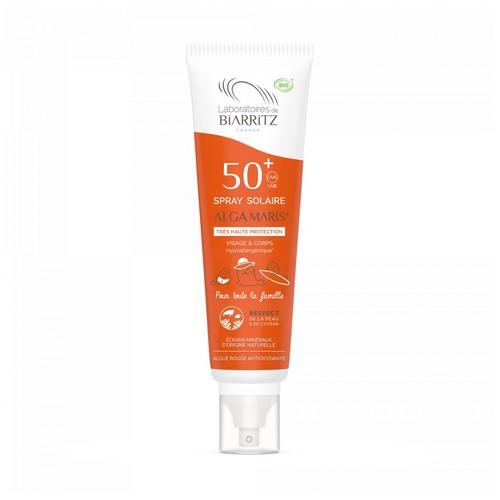 Um beim Sonnenschutz keine Kompromisse einzugehen ist das große Sonnenspray mit 150 ml Inhalt und LSF50+ die ideale Sonnenpflege, um die ganze Familie zu schützen. Dank seiner mineralischen Anti-UVA-/-UVB-Schutzfilter bietet dieses Sonnenspray einen sehr hohen natürlichen Schutz. Der patentierte Extrakt der Rotalge Alga-Gorria® neutralisiert freie Radikale und verhindert Zellschäden und vorzeitige Hautalterung durch Sonneneinstrahlung.