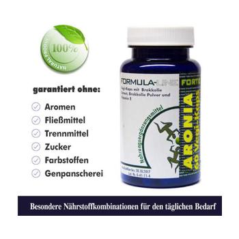 Zutaten: Aronia Fruchtsaft Pulver, Aronia Extract 10%, E464 (Kapsel): Hydroxypropylmethylcellulose.