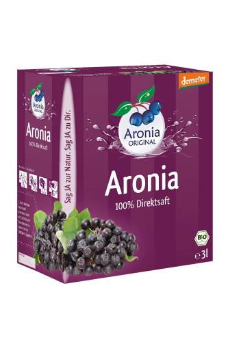 In 3 Litern unseres demeter-Aroniasafts stecken über 5000 frische Aroniabeeren in hochwertigster Aronia ORIGINAL-Qualität. Die naturnahe, nachhaltige und ganzheitliche Philosophie der bio-dynamischen Landwirtschaft nach Demeter und unsere Expertise, sind Garanten für Aroniabeeren der Extraklasse. Diesem hohen Maßstab haben wir uns verpflichtet, um Ihnen für Ihr Wohlbefinden die beste Qualität zu ermöglichen. Damit unsere Säfte nicht nur intensiv schmecken, sondern auch die Fülle ihrer natürlichen Inhaltsstoffe behalten, werden unsere Aroniabeeren nur ein einziges Mal gepresst. Hierbei entsteht ein Direktsaft, oder auch Muttersaft genannt, der außer besten Demeter-Aroniabeeren nur noch Liebe enthält. Im praktischen 3L Bag-in-Box-System steckt unser Aronia Direktsaft in einem BPA-freien Kunststoffbeutel mit integriertem Zapfhahn und wird unter Ausschluss von Sauerstoff aufbewahrt – so bleibt der Saft auch ungekühlt geöffnet bis zu drei Monate frisch und lecker.