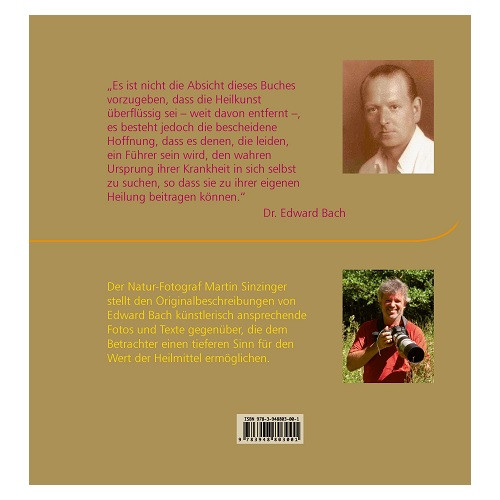 Der Natur-Fotograf Martin Sinzinger stellt den Originalbeschreibungen von Edward Bach künstlerisch ansprechende Fotos und Texte gegenüber, die dem Betrachter einen tieferer Sinn für Wert der Heilmittel ermöglichen.