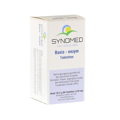 Nahrungsergänzungsmittel mit natürlichen, pflanzlichen Enzymen aus Aspergillus oryzae. Ananas -, Papaya- und Feigenfruchtpufver, dem Mineralstoff Zink sowie Traubenkern-Extrakt (OPC).