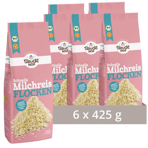 Mit diesen Milchreisflocken in guter Bio-Qualität gelingt ein leckerer Milchreis in Nullkommanichts. Alles, was zu tun ist, ist Milch oder eine vegane Alternative hinzuzufügen. Aufkochen, quellen lassen, fertig in sieben Minuten. Noch besser schmeckt der Milchreis mit etwas Zimt oder Zucker verfeinert. Im Gegensatz zu ganzen Milchreiskörnern lassen sich Flocken zudem deutlich schneller kochen. Weil die Milchreisflocken von Natur aus einen süßlichen Geschmack haben, sind sie auch als Zutat im Müsli sehr zu empfehlen.