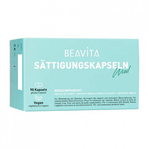Die Sättigungskapseln von BEAVITA enthalten als Wirkstoff eine Kombination aus reinen, natürlichen viskosen Polysacchariden. Diese absorbieren innerhalb von 30 Minuten bis eine Stunde hundert Mal ihr Gewicht in Wasser. Es bildet sich eine Gel-Matrix, die für eine Sättigung sorgt. Dadurch fällt die Essensportion geringer aus. Weil sich die Gel-Matrix mit der Nahrung vermischt, wird die Verdauung ebenfalls verlangsamt, sodass ein normaler Blutzuckerspiegel gefördert wird.