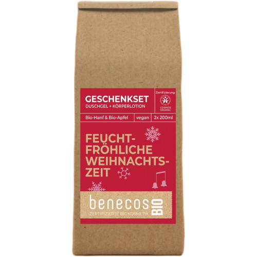Weihnachtliches Duo: Duschgel und Körperlotion mit schützendem Bio-Hanfsamenöl, regionalem Bio-Apfelsaft und pflanzlichen Tenside pflegen den Körper, während der würzig-warme Duft nach Orangen und Nelken für kuschelig-besinnliche Wohlfühlmomente sorgt.