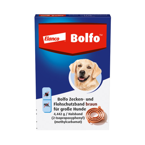 Bolfo Zecken- und Flohschutzband braun für große Hunde 4,442 g/Halsband. Wirkstoff: Propoxur (2-Isopropoxyphenyl)(methylcarbamat)