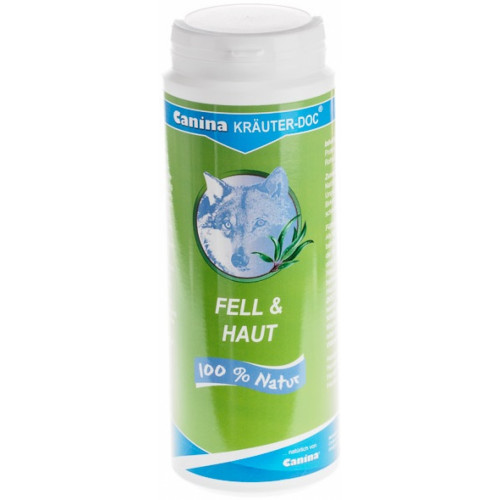 Canina KRÄUTER-DOC® FELL & HAUT ist eine fein vermahlene und daher optimal verwertbare Mischung ausgesuchter Kräuter, die zur ernährungsphysiologischen Unterstützung von Haut- und Haarkleid bei Juckreiz, schuppen, Allergien, Haarausfall zugefüttert werden kann.
