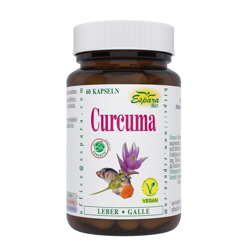 Nahrungsergänzungsmittel mit Curcuma-Pulver und Artischocken-Extrakt aus kontrolliert biologischem Anbau.