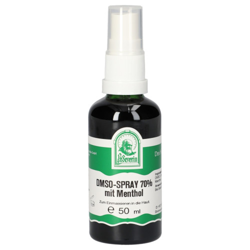 DMSO ist die Abkürzung für Dimethylsulfoxid. Es handelt sich um eine Schwefelverbindung, welche die Fähigkeit besitzt, leicht durch die Haut und Zellmembranen einzudringen. DMSO-Spray ist ein Qualitätsprodukt mit hochwertigen Inhaltsstoffen. Das Spray ist mit oder ohne Menthol erhältlich. Das Menthol ist für einen intensiv kühlenden Effekt verantwortlich.