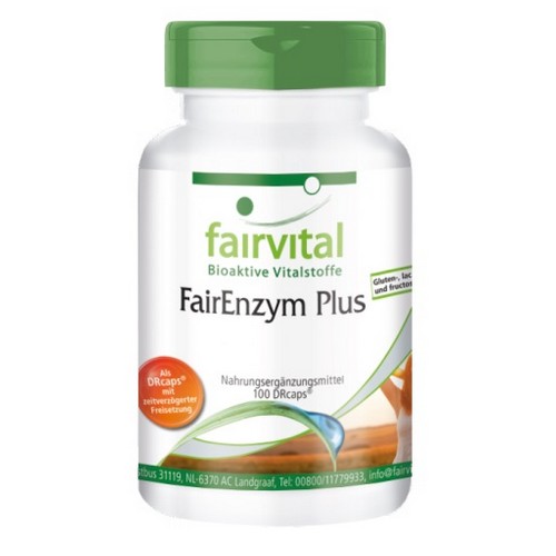 FairEnzym Plus ist ein Nahrungsergänzungsmittel auf Basis von Rutosid, Bromelain, Trypsin und Chymotrypsin in DRcaps® für eine zeitverzögerte Freisetzung.