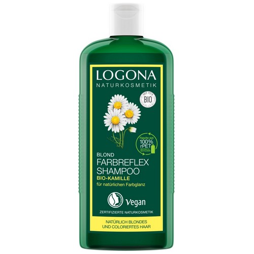 Das LOGONA FARBREFLEX SHAMPOO BLOND ist die ideale Pflege für pflanzengefärbtes sowie natürlich blondes Haar. Die besonders schonende vegane Farbpflege-Formel natürlichen Ursprungs mit Bio-Kamille und milden Tensiden belebt die Farbintensität und schenkt dem Haar seidige Geschmeidigkeit. Nachhaltige Verpackung: Flasche aus 100% rPET und Etikett aus 50% rPE - recycelt & recycelbar.