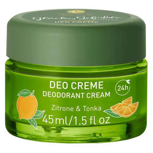 Die vegane Deo Creme Glücksgefühle bietet duftenden 24-Stunden-Schutz ohne Aluminiumsalze. Sie desodoriert mit einer Pflanzenkraftkomposition aus Bio Kokosöl, Bio Sheabutter und Bio Benzoe Siam. Sie wirkt antibakteriell, geruchsabsorbierend und -neutralisierend, sowie antiirritativ und feuchtigkeitsbindend allein durch die Kraft naturreiner Inhaltsstoffe. Ihr sonnig-leichter Duft aus Bio Zitrone und Bio Tonka wirkt inspirierend und erfrischend, und schenkt einen Moment des Glücklichseins.
