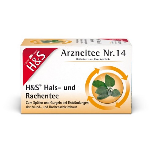 H&S Hals- und Rachentee. Anwendungsgebiete: Traditionelle Anwendung in der Mundhöhle: Zum Gurgeln bei Entzündungen im Mund und Rachen. Die Anwendung stützt sich ausschließlich auf die langjährige Anwendung des Arzneimittels im Anwendungsgebiet. Zu Risiken und Nebenwirkungen lesen Sie die Packungsbeilage oder fragen Sie Ihren Arzt oder Apotheker. H&S Tee-Gesellschaft mbH & Co. · Heidachstr. 62 · D-88079 Kressbronn/Bodensee.