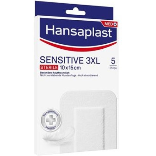 Die sterilen Wundverbände Hansaplast Sensitive XL, XXL, 3XL und 4XL sind sterile Pflaster zum Schutz mittelgroßer und größerer Wunden, wie sie im Alltag entstehen können.