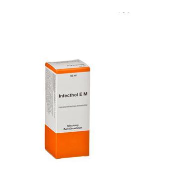 Infecthol E M darf bei Überempfindlichkeit gegen einen der arzneilich wirksamen oder einen der sonstigen Bestandteile von Infecthol E M nicht eingenommen werden. Das Arzneimittel soll bei Alkoholkranken nicht angewendet werden. Bei Leberkranken sollte das Arzneimittel nur nach Rücksprache mit einem Therapeuten eingenommen werden. Zur Anwendung dieses Arzneimittels bei Kindern liegen keine ausreichend dokumentierten Erfahrungen vor. Es soll deshalb bei Kindern unter 12 Jahren nicht angewendet werden. Da keine ausreichend dokumentierten Erfahrungen zur Anwendung in Schwangerschaft und Stillzeit vorliegen, sollte das Arzneimittel nur nach Rücksprache mit dem Therapeuten angewendet werden.