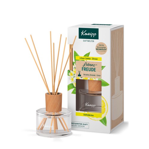 Genieße die Schönheit des Lebens! Der frische sonnige Duft der Kneipp® Duftstäbchen Lebensfreude mit natürlichem ätherischem Öl der Litsea Cubeba belebt und aktiviert die Sinne.