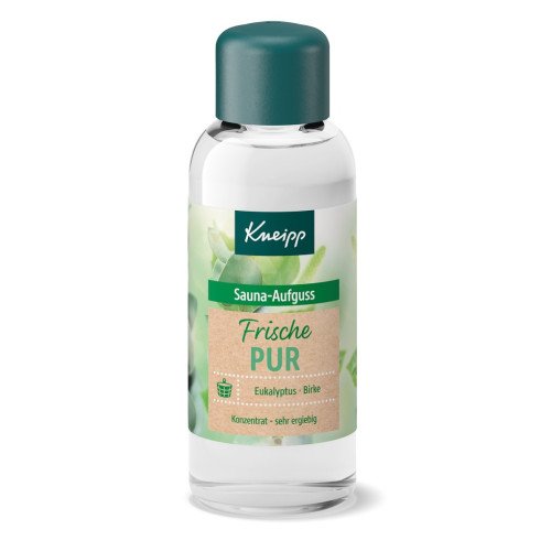 Der frisch herbe Kneipp® Sauna-Aufguss Frische Pur enthält wertvolles, sorgfältig ausgewähltes ätherisches Eukalyptus-Öl in bewährter Kneipp-Qualität. Auszüge von Birke runden die wohltuende Wirkung des Kneipp® Sauna-Aufgusses ab und machen ihn zur wirkungsvollen Ergänzung regelmäßiger Saunagänge.