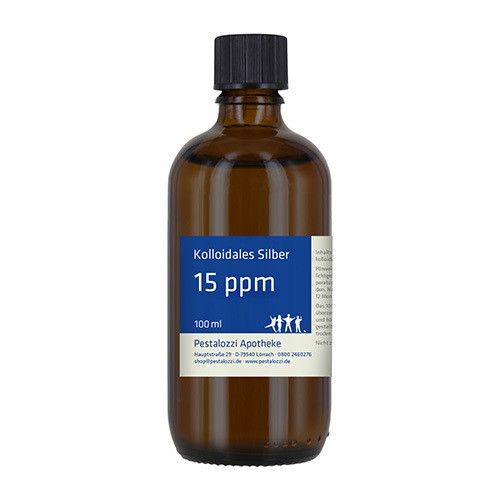Das kolloidale Silber 15 ppm wird mit hochreinem destillierten Wasser unter qualifizierten Laborbedingungen frisch hergestellt und in einer dunklen Glasflasche geliefert. Die Herstellung erfolgt in der Apotheke unter überwachten Laborbedingungen. Das kolloidale Silber wird auf elektrolytischem Wege mit Hilfe eines entsprechenden Generators hergestellt. Dabei werden aus 99,99% reinem Silber kleinste Partikel gebildet und in destilliertem Wasser verteilt. Wir arbeiten dabei ohne Einsatz von Zusatzstoffen. Bitte beachten Sie: Kolloidales Silber ist kein Arzneimittel und daher auch ohne Angabe einer Indikation. Aus rechtlichen Gründen bieten wir daher das kolloidale Silber nur für technische Zwecke an. Nicht zum Einnehmen.