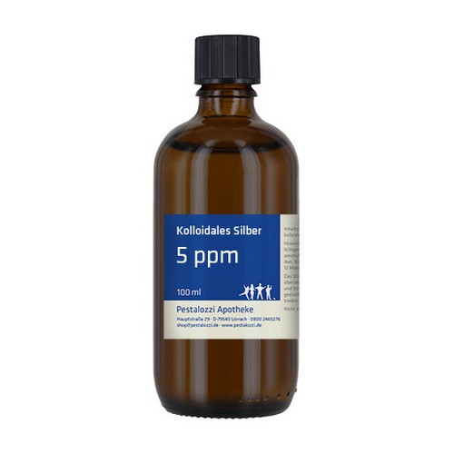 Das kolloidale Silber 5 ppm wird mit hochreinem destillierten Wasser unter qualifizierten Laborbedingungen frisch hergestellt und in einer dunklen Glasflasche geliefert. Die Herstellung erfolgt in der Apotheke unter überwachten Laborbedingungen. Das kolloidale Silber wird auf elektrolytischem Wege mit Hilfe eines entsprechenden Generators hergestellt. Dabei werden aus 99,99% reinem Silber kleinste Partikel gebildet und in destilliertem Wasser verteilt. Wir arbeiten dabei ohne Einsatz von Zusatzstoffen. Bitte beachten Sie: Kolloidales Silber ist kein Arzneimittel und daher auch ohne Angabe einer Indikation. Aus rechtlichen Gründen bieten wir daher das kolloidale Silber nur für technische Zwecke an. Nicht zum Einnehmen.