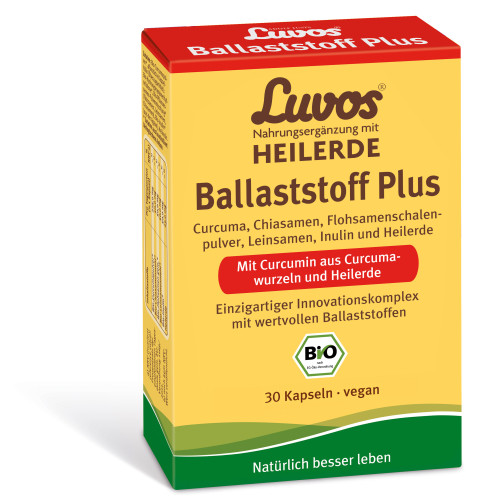 Luvos Ballaststoff Plus ist ein optimal abgestimmter Bio-Komplex mit Heilerde und natürlichen, bio-zertifizierten Zutaten. Das hochwertige Naturprodukt kombiniert die Heilerde mit Bio-Curcuma, das mit seinem hohen Curcumin-Gehalt zu einer normalen Verdauung beiträgt. Der einzigartige Innovationskomplex enthält außerdem traditionell bewährte Bio-Chiasamen, Bio-Flohsamen, Bio-Leinsamen und Bio-Inulin aus der Blauen Agave. Es genügt, täglich eine Kapsel davon einzunehmen.