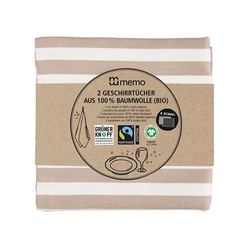 Die GOTS-zertifizierten, qualitativ hochwertigen memo Geschirrtücher werden zu 100 % aus Fairtrade-zertifizierter Bio-Baumwolle hergestellt.