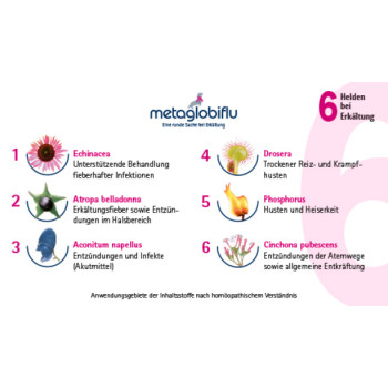 Die Anwendungsgebiete leiten sich von den homöopathischen Arzneimittelbildern ab. Dazu gehören: Erkältungskrankheiten.