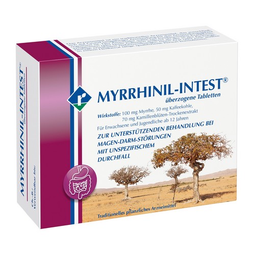 Myrrhinil-Intest wird seit über 60 Jahren erfolgreich zur unterstützenden Behandlung bei Magen-Darm-Störungen mit unspezifischem Durchfall, begleitet von leichten Krämpfen und Blähungen eingesetzt. Das pflanzliche Arzneimittel ist vielseitig einsetzbar, da die drei Arzneipflanzen an verschiedenen Ebenen im Magen-Darm-Trakt ansetzen und sich in ihrer Wirkung gegenseitig verstärken. Damit ist Myrrhinil-Intest insbesondere für Magen-Darm-Störungen mit unspezifischer Herkunft geeignet sind.