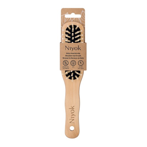 Die Niyok Holz-Haarbürste ist mit ihren Holzborsten perfekt für alle Haartypen und die tägliche Anwendung geeignet.