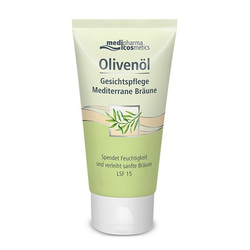 Olivenöl Gesichtspflege Mediterrane Bräune enthält kaltgepresstes Olivenöl und einen natürlichen Bräunungswirkstoff (DHA), der Ihrem Teint eine sanfte Bräune verleiht. Angereichert mit Vitaminen pflegt die Creme Ihre Haut und versorgt sie mit Feuchtigkeit. Schützen Sie Ihre Haut vor schädigenden UV-Strahlen durch einen LSF 15.