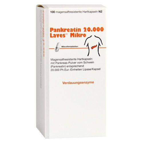 Magensaftresistente Hartkapsel mit Pankreas-Pulver vom Schwein entsprechend 20.000 Ph.Eur. Einheiten Lipase