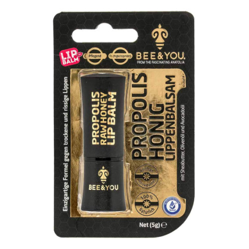 Propolis Honig Lippenbalsam enthält natürliche Zutaten wie Sheabutter, Olivenöl und Avocadoöl, mit pflegender und feuchtigkeitsspendender Eigenschaft.