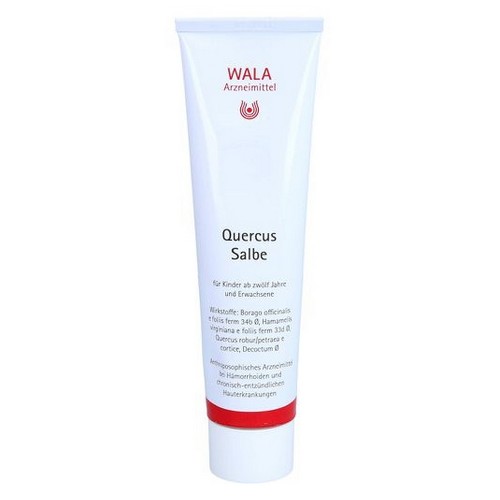 - Tragen Sie die WALA Quercus Salbe 1- bis 3-mal täglich auf die betroffenen Stellen auf.