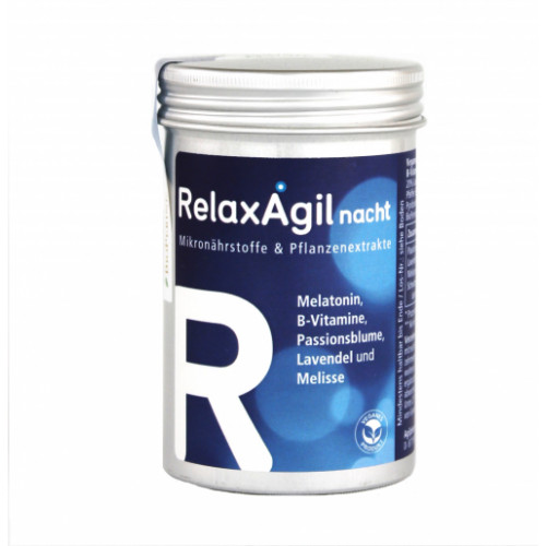 Füllstoff: Hydroxypropylmethylcellulose, 20% Passionsblumen-Extrakt, 20% Lavendel-Extrakt, Maltodextrin, 16% Melissen-Extrakt, Eisencitrat, Zinkcitrat, 1,0% Schwarzer Pfeffer-Extrakt (BioPerine®), Trennmittel: Magnesiumsalze der Speisefettsäuren und Siliciumdioxid, Pyridoxinhydrochlorid, Melatonin, Pteroylmonoglutaminsäure.