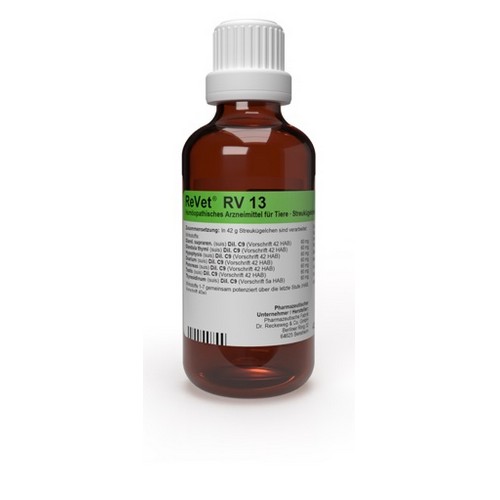 ReVet® RV 13 - oral - (Globuli) wird in etwas Wasser aufgelöst eingegeben. Die Globuli dürfen auch aufgelöst mit etwas Nahrung oder Tränke verabreicht werden. Die Häufigkeit und Dauer der Anwendung richtet sich in erster Linie nach den Grundsätzen der Homöopathie, wonach bei beginnender Besserung seltener dosiert wird und nach Erreichen des Normalzustandes zunächst keine weitere Anwendung erforderlich ist.