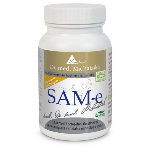 SAMe (S-Adenosyl-L-Methionin) ist eine natürliche im Körper vorkommende Substanz. S-Adenosyl-L-Methionin wird unter Energieaufwand aus der essentiellen Aminosäure Methionin gebildet.