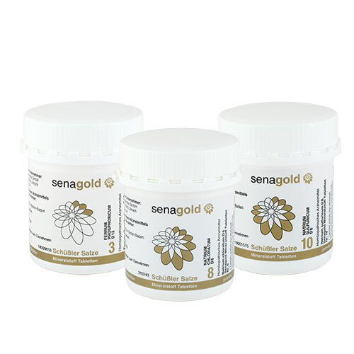 Das Set besteht aus den Schüssler Salzen Nr.3, 8 und 10 je 400 Tabletten.