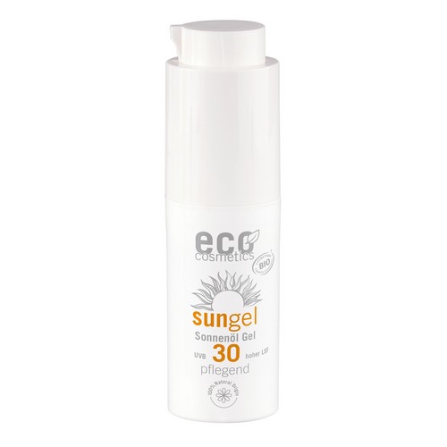 Das Bio-Sonnengel mit LSF 30 für sensible Haut verfügt über einen mineralischen Lichtschutz. Die Kombination aus Granatapfel und Sanddorn spendet Feuchtigkeit und pflegt die Haut. Der UVA-UVB-Schutz mit LSF 30 ist ausgeglichen im Verhältnis 1:3 und wirkt sofort. Eco Cosmetics Sonnengel ist frei von Zinkoxiden und Aluminiumsalzen sowie von PEG, SLS, Parabenen, genmanipulierten Organismen und Nanotechnologie. Das Bio-Sonnengel ist vegan, frei von Silikonen, Paraffinen und anderen Erdölprodukten sowie allergenfrei und tierversuchsfrei.