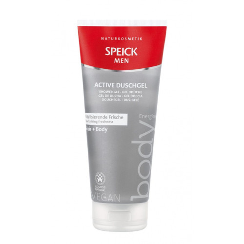 Speick Men Active Duschgel. Vitalisierende Frische für Haut und Haar. Belebt mit pflanzlichen Wirk- und Pflegestoffen. Bio-Schilfrohr-Extrakt und Vitamin F spenden lang anhaltende Feuchtigkeit und schützen die Haut vor äußeren Einflüssen. Gluten- und laktosefrei. Dermatologisch allergologisch getestet.