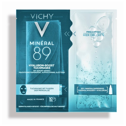 Die MINÉRAL 89 HYALURON-BOOST FRESH-MIX TUCHMASKE stärkt die Hautbarriere innerhalb von 10 Minuten. Vulkanisches Wasser wirkt feuchtigkeitsspendend, natürliches Hyaluron polstert auf und Fasern der Mikroalge revitalisieren die Haut. Die Wirksamkeit der Gesichtsmaske wurde klinisch bewiesen und ist besonders für empfindliche Haut geeignet.