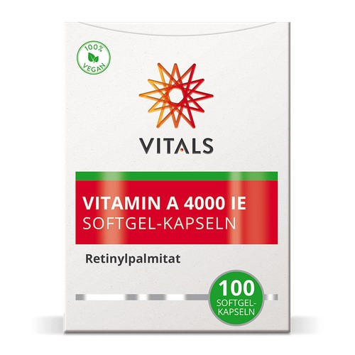 Vitamin A 4000 IE von Vitals besteht aus veganen Softgel-Kapseln mit einer hohen Dosis Vitamin A in der stabilen und reinen Form von Retinylpalmitat in einer Basis aus MCT-Öl. Softgel-Kapseln sind beliebt und äußerst angenehm in der Anwendung, da sie leicht zu schlucken sind. Glücklicherweise werden Softgel-Kapseln heute nicht mehr ausschließlich aus tierischer Gelatine hergestellt. Mittlerweile gibt es pflanzliche Alternativen (wie Tapiokastärke aus Maniok). Vitamin A 4000 IE von Vitals ist daher auch sehr gut für Vegetarier und Veganer geeignet.