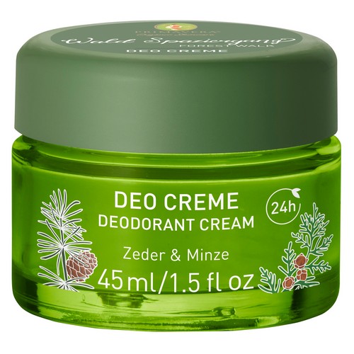 Die vegane Deo Creme Waldspaziergang bietet duftenden 24-Stunden-Schutz ohne Aluminiumsalze. Sie desodoriert mit einer Pflanzenkraftkomposition aus Bio Kokosöl, Bio Sheabutter und Bio Benzoe Siam. Sie wirkt antibakteriell, geruchsabsorbierend und -neutralisierend, sowie antiirritativ und feuchtigkeitsbindend allein durch die Kraft naturreiner Inhaltsstoffe. Ihr waldig-frischer Duft aus Bio Zeder und Bio Minze wirkt belebend, und schenkt Kraft und Klarheit.