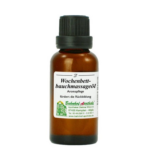 Ab dem 1. Tag nach der Geburt mit dem in den Handflächen körperwarmem Öl den Bauch kräftig und mehrmals täglich einmassieren. Das Wochenbettbauchmassageöl kann bis zu mehrere Monate nach der Geburt verwendet werden.