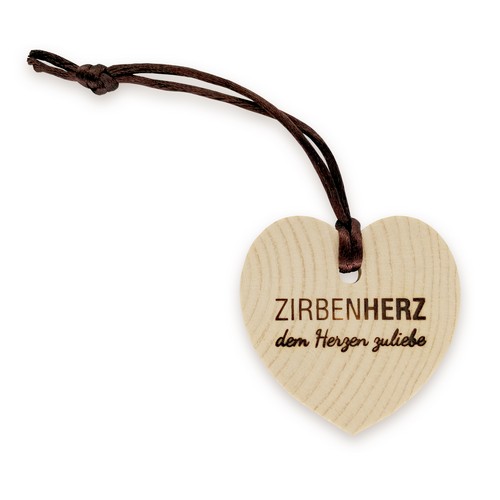 Format 50 x 50 mm bzw. 75 x 75 mm inkl.Branding „Zirben Herz–dem Herzen zuliebe“