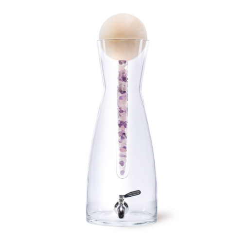 - ca. 360 mm mundgeblasener Spezial-Glasstab, gefüllt mit drei verschiedenen Edelsteinen (Rosenquarz,Bergkristall,Amethyst)–gastrotauglich